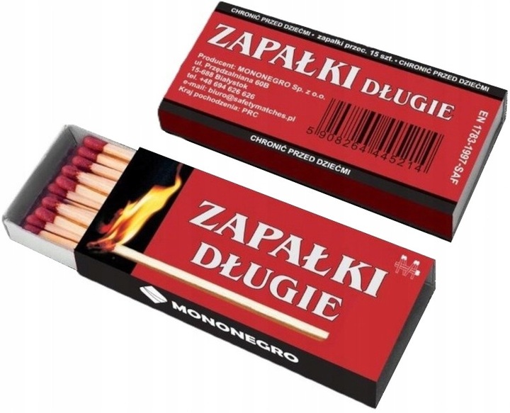 Podana cena dotyczy 1 opakowania zawierającego 15 zapałek. Zainwestuj w jakość i bezpieczeństwo zapałek długich od Mononegro - dla domowych przyjemności i nie tylko.